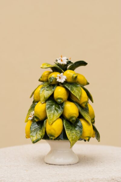 • Centrotavola Piramide in Ceramica Dipinta a Mano – Limoni e Fiori
