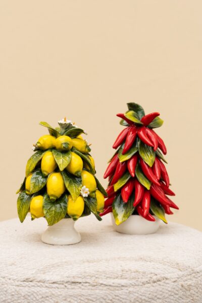 • Centrotavola Piramide in Ceramica Dipinta a Mano – Peperoncini Rossi