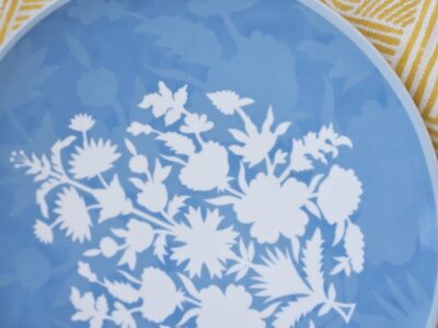 Piatti Piani in Ceramica Dipinta a Mano con Decalcomania Floreale Applicata a Mano – Set di 2