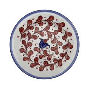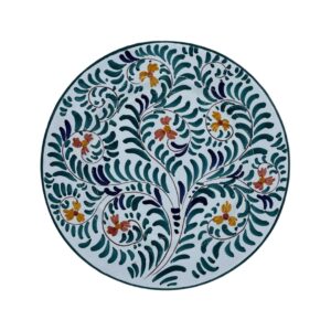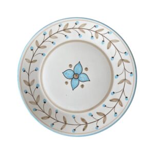 Hand-Painted Ceramic Flat Plate with Floral Motif