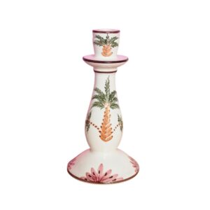 Elegante e suggestivo, questo candeliere in ceramica dipinta a mano della collezione The Dates Tree porta calore e fascino in qualsiasi ambiente. Caratterizzato da un delicato motivo con palma da dattero, incorniciato da morbidi accenti floreali in rosa cipria, ogni pezzo รจ dipinto a mano in Italia, rendendo ogni candeliere unico. Un dettaglio decorativo perfetto per la tavola, una console o un caminoโideale da abbinare a candele sottili per creare unโatmosfera calda e accogliente.