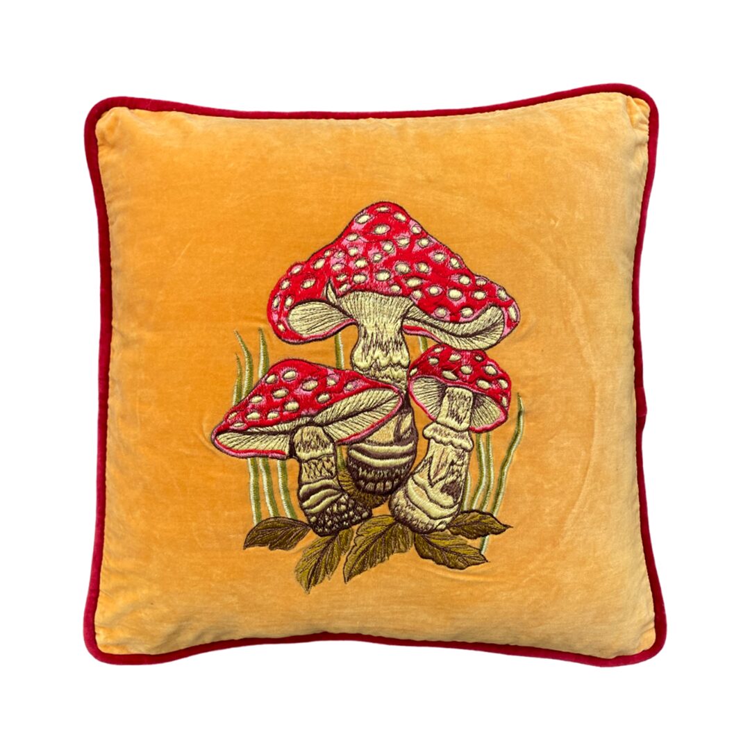 Porta un tocco boschivo e decorativo al tuo spazio con questo cuscino in velluto ricamato con motivo fungo. Il velluto liscio dona profondità e texture, mentre il ricamo dettagliato aggiunge personalità e stile. Il retro è in semplice cotone, per un contrasto sobrio e naturale. Perfetto per divani, poltrone o letti, è un accessorio che unisce comfort e originalità.