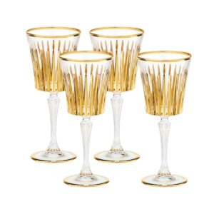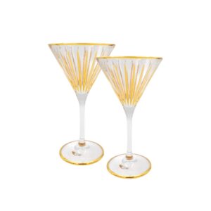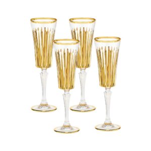 Porta colore e artigianalità sulla tua tavola con questo set di quattro flauti di cristallo dipinti a mano. Decorati con audaci righe verticali e realizzati nel pregiato vetro di Murano, ogni bicchiere è una piccola opera d’arte funzionale. Ideali per acqua, cocktail o bibite, uniscono design giocoso e tradizione vetraria italiana senza tempo.