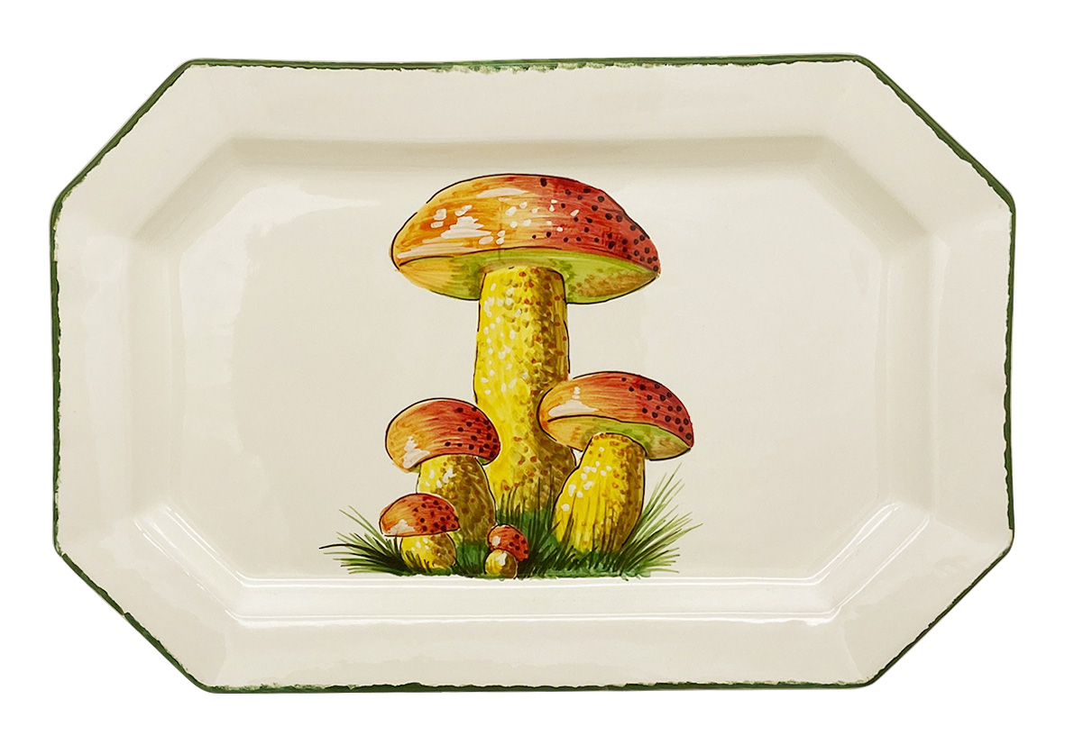 Artistico e ispirato alla natura, questo vassoio in ceramica dipinta a mano presenta un affascinante motivo centrale a fungo e un bordo rifinito con cura. Realizzato in Italia da artigiani esperti, è perfetto per servire antipasti, dolci o bevande—oppure semplicemente da esporre come elemento decorativo in cucina o in sala da pranzo. Ogni vassoio è dipinto a mano, rendendo ogni pezzo una celebrazione unica dell’artigianalità e del fascino del bosco.