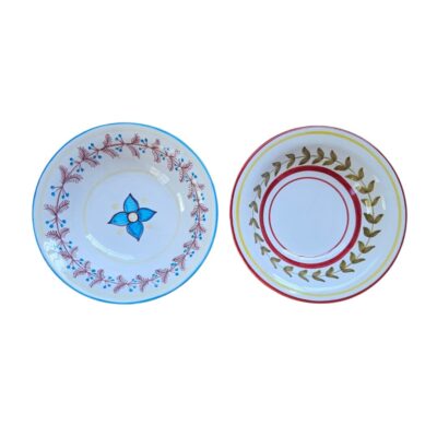 Hand-Painted Ceramic Dishes in Organic Shape - Set of 2