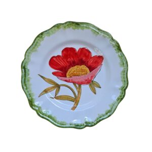 Piatto Piano in Ceramica Dipinta a Mano – Fiore Rosso