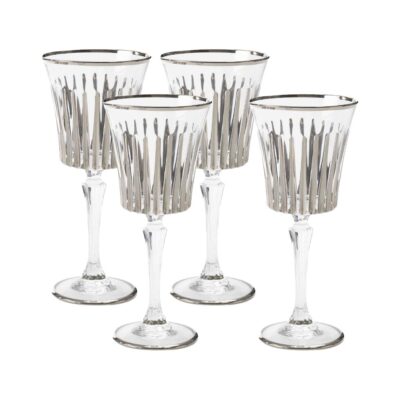 • Bicchieri da Vino in Cristallo Dipinti a Mano – Set da Quattro, Platino