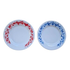 Piatti Piani e da Dessert in Ceramica Dipinta a Mano – Bambù Rosso, Set di 2