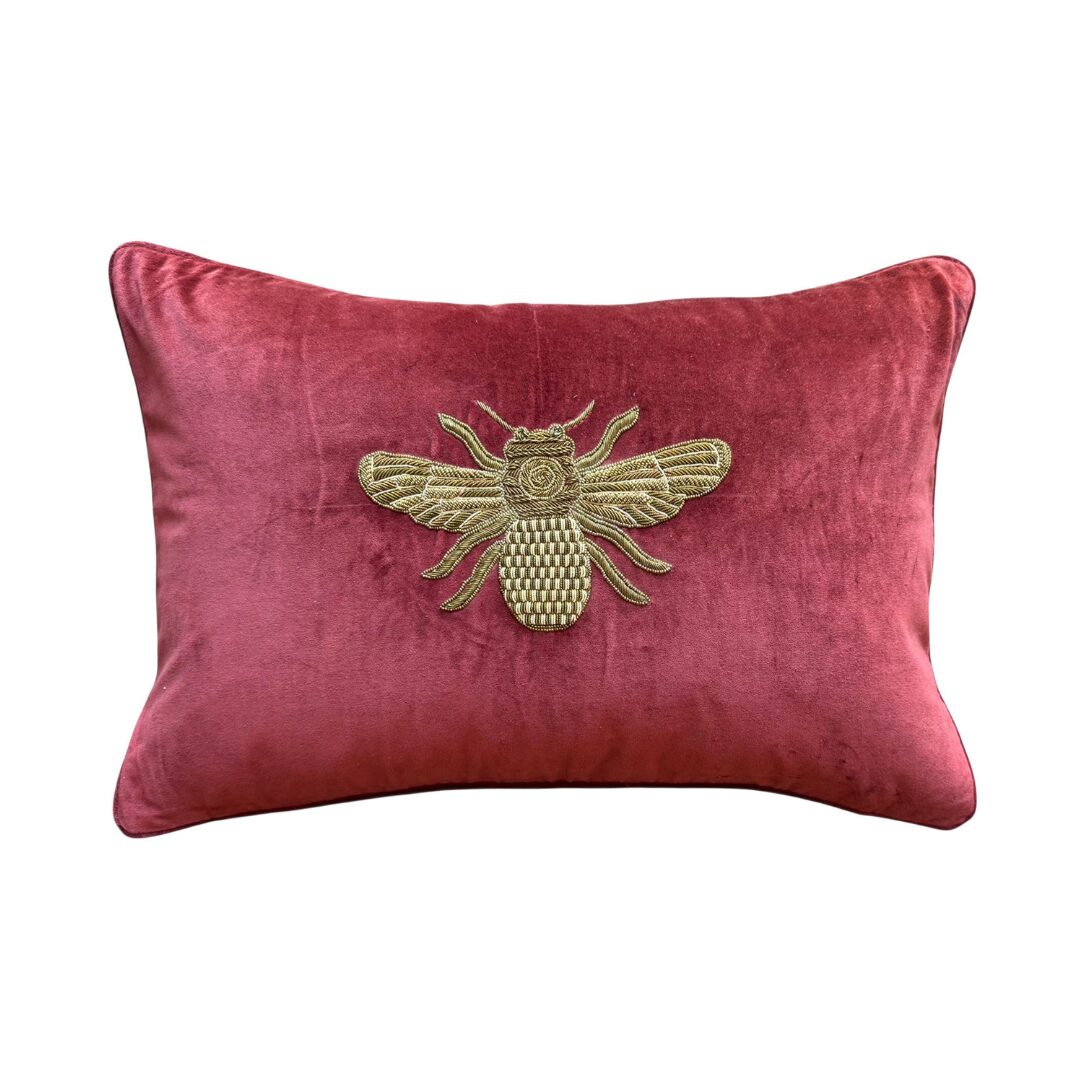 Allegro e raffinato, questo cuscino in velluto ricamato raffigura una simpatica ape stilizzata, aggiungendo un tocco giocoso ma elegante all’ambiente. Il contrasto tra il ricamo dettagliato e la superficie liscia del velluto rende il cuscino un elemento decorativo ricco di fascino. Il retro in velluto semplice completa il design con sobrietà.