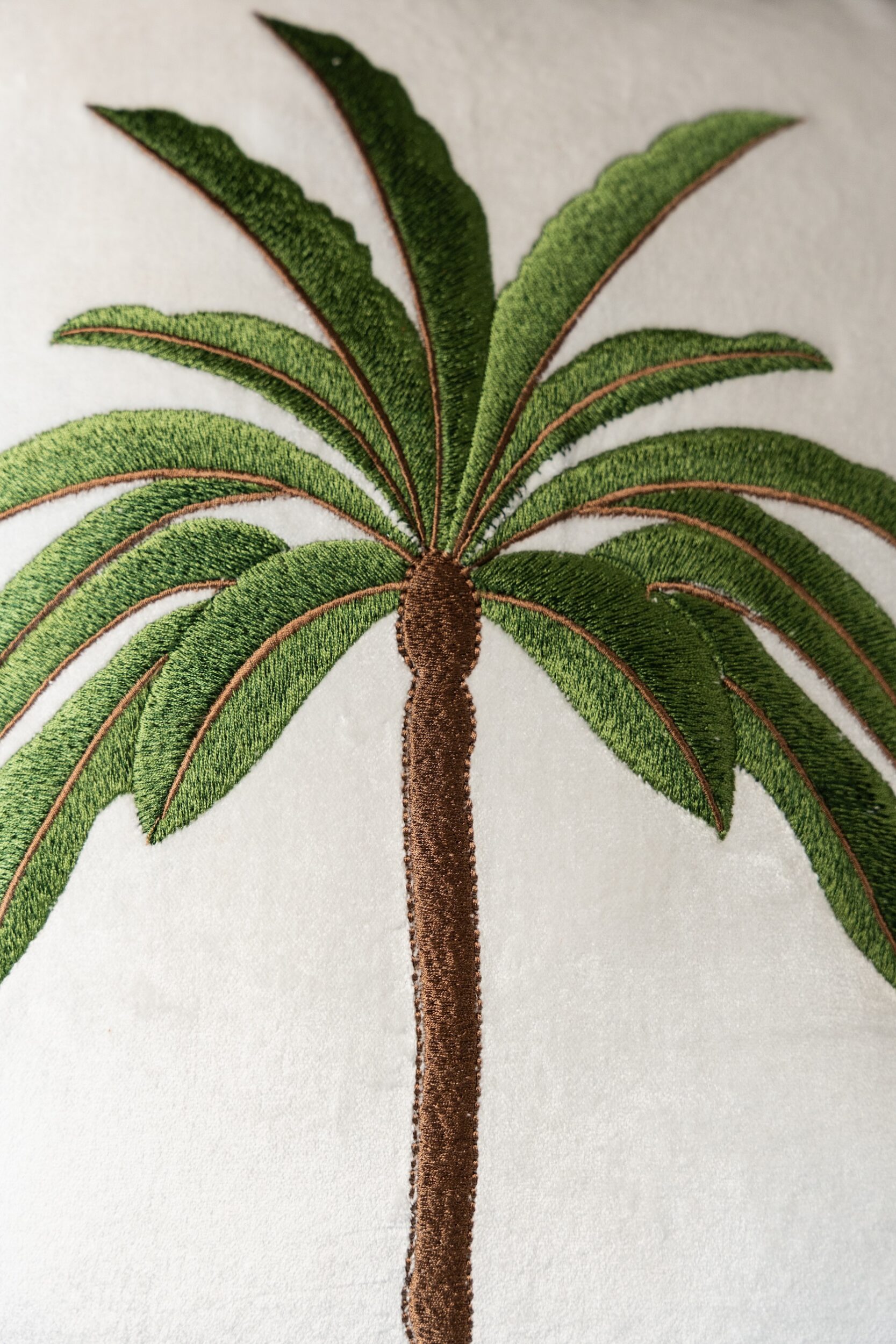 Ricco e decorativo, questo cuscino in velluto ricamato porta un tocco di fascino tropicale nei tuoi ambienti. Caratterizzato da un dettagliato motivo di palma ricamato su morbido velluto, celebra l’artigianalità e la texture con equilibrio. Ideale da sovrapporre su divani, poltrone o letti, aggiunge calore, personalità e un accento esotico a qualsiasi spazio.