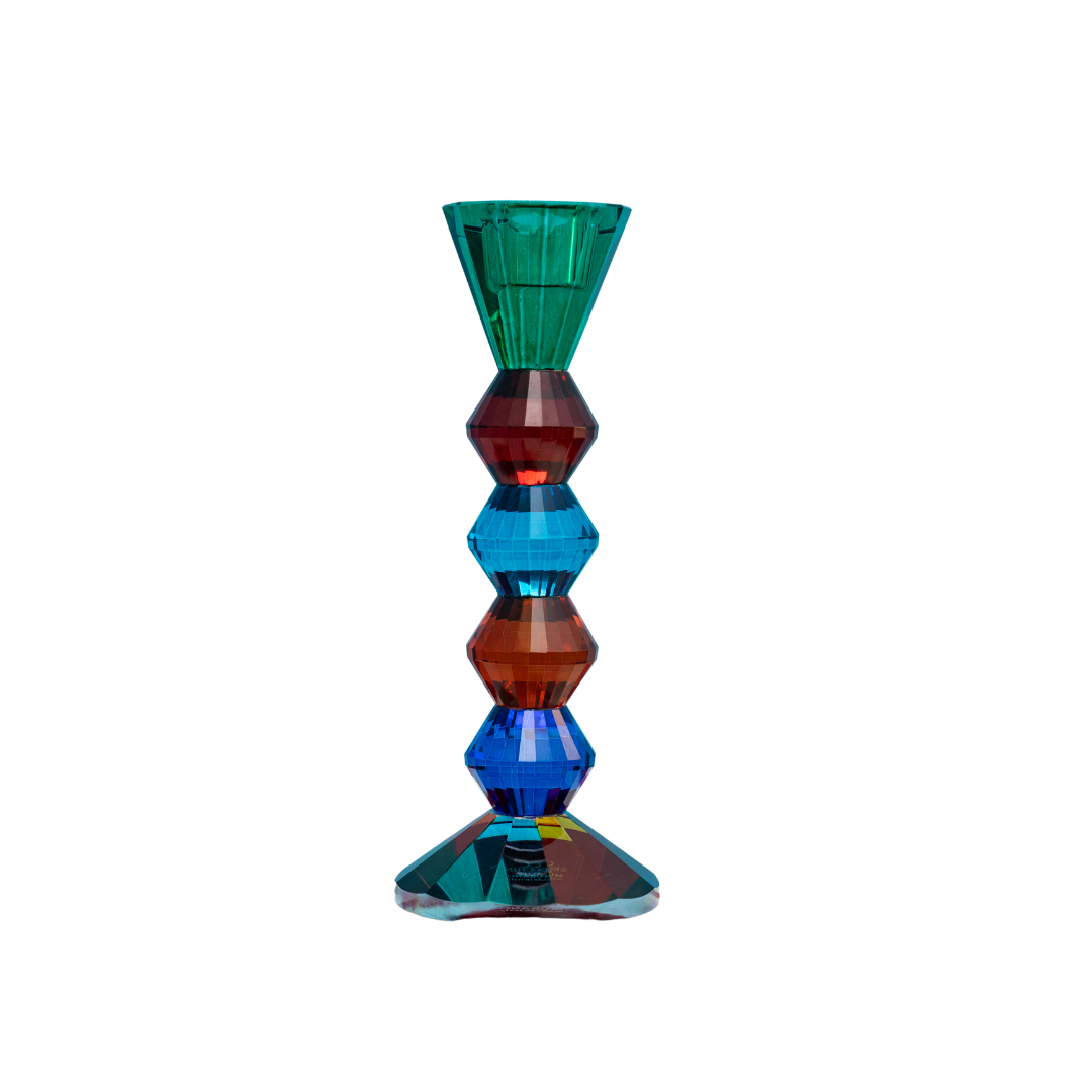 Elegante e moderno con un tocco giocoso, questo portacandela in cristallo è realizzato in cristallo solido e proposto in vivaci colori a tinta unita, perfetti per aggiungere un accento luminoso e sofisticato a qualsiasi ambiente. Le linee pulite e la silhouette geometrica lo rendono un elemento decorativo d’impatto, da solo o abbinato in più colori per un effetto ancora più scenografico.